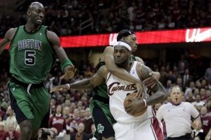 2010年东部半决赛(骑士VS绿军)G4中,詹姆斯在完成后场抢断后准备上篮,紧随身后的皮尔斯采取犯规战术,两人互相抱着摔入了观众席。詹姆斯的母亲在现场观战愤怒不已,詹姆斯在一旁对着母亲大吼道:“Sit down!(你给我坐下!)。