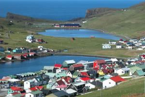 在挪威与冰岛之间的茫茫大海上,有18座岛屿如造物主不经意间洒落的翡翠,点缀在深蓝色的北大西洋中,这里就是法罗群岛(法罗语:Føroyar,丹麦语:Færøerne),丹麦王国的海外自治领地。1399平方公里的陆地上,陡峭的悬崖如同巨人的阶梯,直插汹涌的海面,1117公里曲折的海岸线勾勒出这片土地倔强的轮廓。