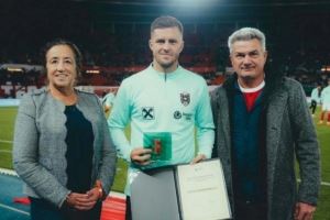 体育资讯10月16日讯 莱比锡官网消息,克里斯托夫-鲍姆加特纳在新赛季伊始表现出色,已经打入两球并有一次助攻。周三,这位奥地利国脚从国家队归来时,手中还拿着一个特别的奖杯。不过,这一次吸引人们注意的并不是他的足球成就。鲍姆加特纳因社会贡献而获公平竞赛奖。