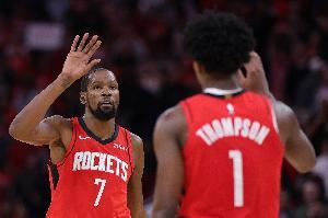 此役火箭球星杜兰特高效发挥,打了37分钟15投11中,三分2中2、罚球9中7砍下31分3篮板7助攻,正负值+2。